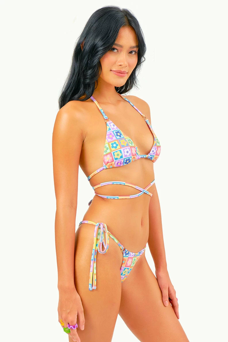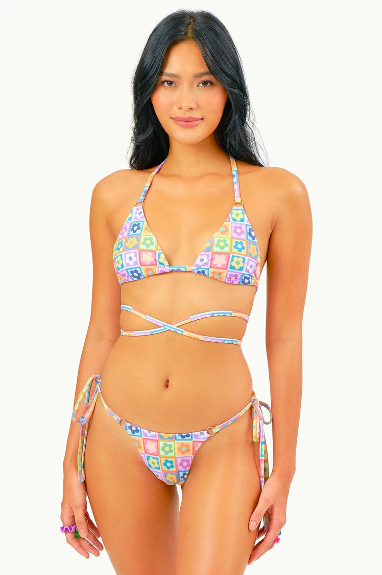 With its ring details and ultra long straps, the Chloe Top lets you rock this triangle style in multiple ways. Tie it back for a classic look, or tie it around for an edgier one.